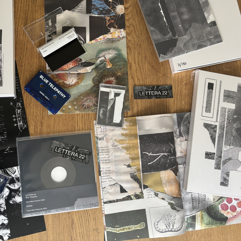 R Lettera 22 is a project of Riccardo Mazza and Matteo Castro, hailing from northeast Italy, a region riddled by ravines and sleepy villages. For Blue Telepathy they edited concrete sounds, field recordings, analog instruments and tape manipulations into 4 textured compositions, drenched in tape hiss and interrupted by waves of distorted electronics. At the peak of their powers, the duo created a true sense of space and a hauntingly sensorial, immersive shadow world, where ghosts seem to come alive. A desolated landscape where distant traces of rhythm suggest the interaction of machines. No healing or processing, just flashbacks and fading memories.